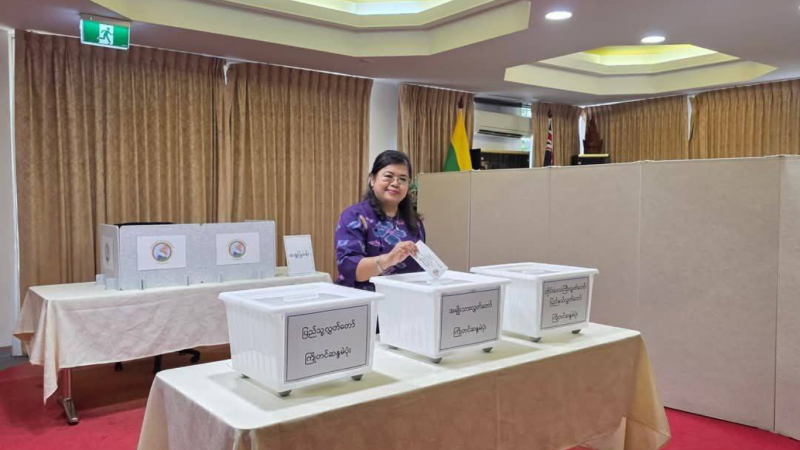 ပုံစာ – ဩစတြေးလျနိုင်ငံရှိ သံရုံးတစ်ခုတွင် ကြိုတင်မဲပေးနေပုံ