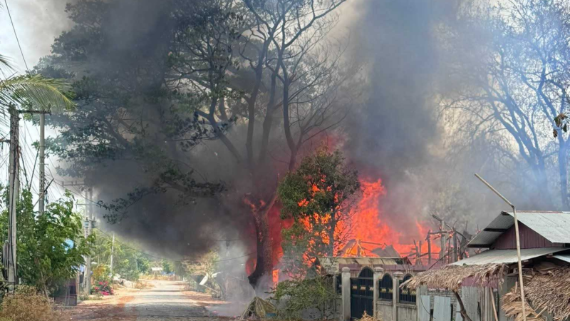 စစ်အုပ်စုက မင်းလက်ပံရွာထဲကို မီးလောင်ဗုံးများ ဆက်တိုက်ကြဲချ၊ အုန်းတောပိုင်းရှိ နေအိမ်များ မီးလောင်