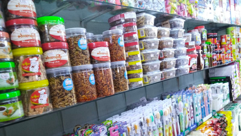 ပုံစာ – ရန်ကုန်မြို့ရှိ လူသုံးကုန်ရောင်းချနေသည့် ဆိုင်တစ်ခုကို မြင်ရပုံ