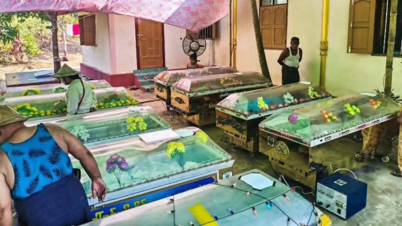 သထုံမြို့နယ် ယာဉ်တိုက်မှုတွင် ပျံလွန်တော်မူသွားတဲ့ သံဃာ ၉ ပါးနဲ့ လူ ၄ ဦးကို သင်္ဂြိုဟ်