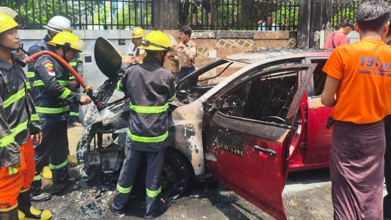 ဒီနေ့ နေ့လယ် ၁၂ နာရီက High Way Complex အိမ်ရာဝင်းအတွင်းမှာ KIA Cerato အငှားယာဉ်တစ်စီး မီးလောင်နေကြောင်း သတင်းအရ သွားရောက်မီးငြှိမ်းသတ်ခဲ့ပြီး ဘာကြောင့် မီးလောင်တယ်ဆိုတာကို စစ်ဆေးနေဆဲဖြစ်တယ်လို့ မီးသတ်ဦးစီးဌာနနဲ့ နီးစပ်တဲ့ သတင်းအရင်းအမြစ်က CJ Platform ကို ပြောပါတယ်။