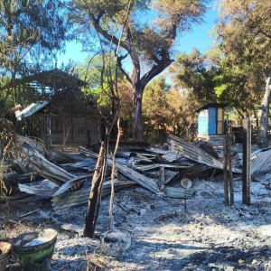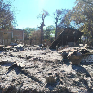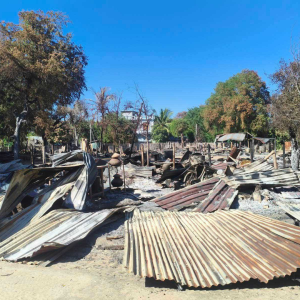 ပုံစာ – ပင်ဇင်းကျေးရွာ မီးရှို့ဖျက်ဆီးခံရသော နေအိမ်များ