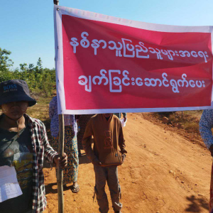မနေ့ နိုဝင်ဘာ ၂၃ ရက်နေ့ ဆန္ဒပြမှုမှာတော့ သဖန်းဆိပ်ဆည်အနီးကျေးရွာ လေးရွာခန့်က ဒေသခံ ၁၂၀ ခန့်က ပါဝင်ခဲ့ပါတယ်။