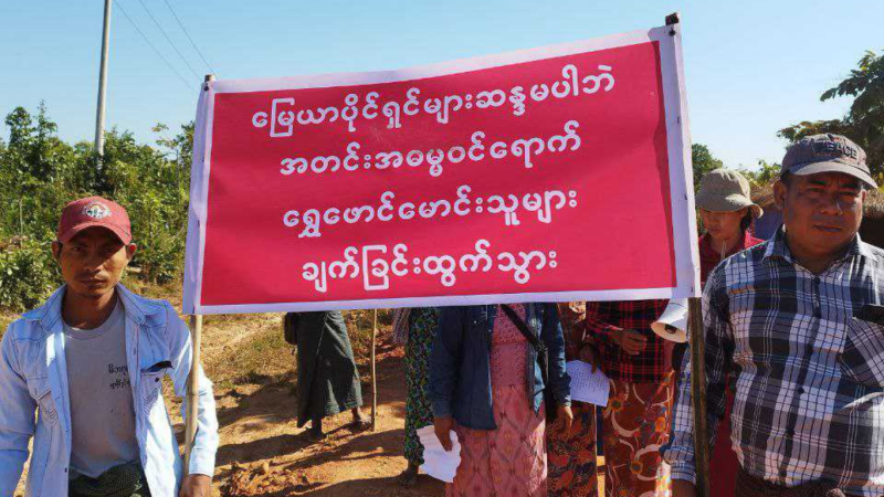 ဒါကြောင့် တောင်သူတွေအနေနဲ့ကတော့ သူတို့ရဲ့ သဘောဆန္ဒနဲ့ အသိပေးတာမရှိပဲ ရွှေ မျောလုပ်ကိုင်ခွင့် ချထားပေးတဲ့ ကောက်ပဲသီးနှံ စိုက်ပျိုးလုပ်ကိုင်ရာ မြေနေရာတွေကို ပြန်လည်ရရှိစေရေးလိုလားနေကြတာဖြစ်ပါတယ်။