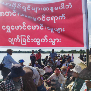 NUG လက်အောက်ခံ တာဝန်ရှိသူတွေ ခွင့်ပြုထားတဲ့ ရွှေမျောလုပ်ငန်းကို သဖန်းဆိပ်ဆည် ဒေသခံများ ဆန္ဒပြ၊ စိုက်ပျိုးမြေများ ပျက်စီးဟု ဆို