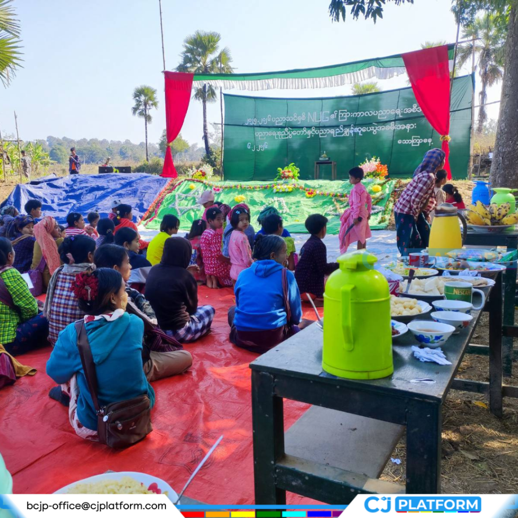 အခု သတင်းဓာတ်ပုံတွေထဲက မြင်ကွင်းတွေကတော့ ယောဒေသတစ်နေရာက မြေပြင်စာသင်ကျောင်းတစ်ခုရဲ့ ကျောင်းပညာရေး စုံညီပွဲတော်ပွဲကျင်းပနေတာပဲ ဖြစ်ပါတယ်။ လွတ်လပ်စွာ ပျော်ရွှင်နေရမယ့် ကလေးငယ်တွေမှာ ဘယ်အချိန် လေယာဉ်ကြီး ပျံဝဲလာပြီး ငါတို့ကို ဗုံးကြဲသွားမလဲဆိုတာကို စိုးရိမ်နေရသလို မိဘတွေနဲ့ ဆရာ၊ဆရာမတွေဟာလဲ ကလေးငယ်တွေ ဘေးကင်းပျော်ရွှင်ရေးအတွက် စိုးရိမ်ပူပန်မှုတွေ အပြည့်ပါပဲ။