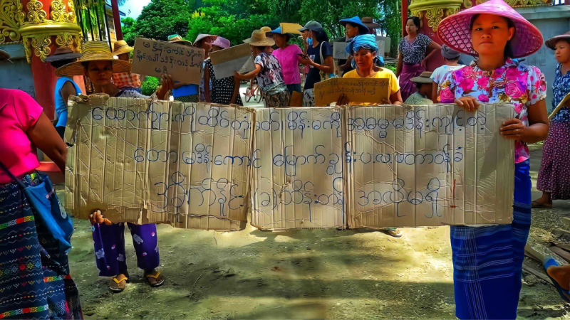 ပုံစာ – အမှုမှန်ပေါ်ပေါက်ရေးအတွက် ဒေသခံများ စုဝေးဆန္ဒပြနေကြပုံ
